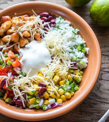 Chicken Breast with chipotle saver served with rice, bean, lettuce, sour cream, cheese and tortillas